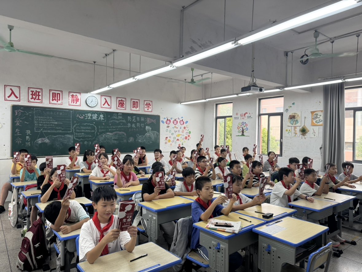 互动环节中,工作人员还向同学们发放了图文并茂的禁毒宣传手册,送上印有禁毒标语的“专属水笔”。