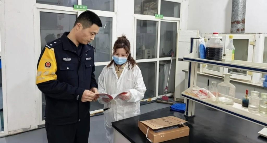 为切实加强易制毒化学品源头管控,严防流入非法渠道,护航企业安全规范生产,近日,咸阳市泾阳县公安局禁毒大队组织民警深入辖区易制毒化学品企业,开展新年禁毒宣传暨安全指导专项行动,把禁毒法治与安全管理送到生产一线。