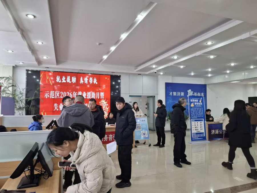 1月30日,河南省济源产城融合示范区2026年就业援助月暨失业人员专场招聘会如期举行。当日室外雪花飞舞、天寒地冻,招聘会现场却人潮涌动、暖意融融,济源示范区人力资源和社会保障局以招聘会为契机,在寒冬中为求职者和广大群众送上了一场内容丰富、服务贴心的人社服务活动。