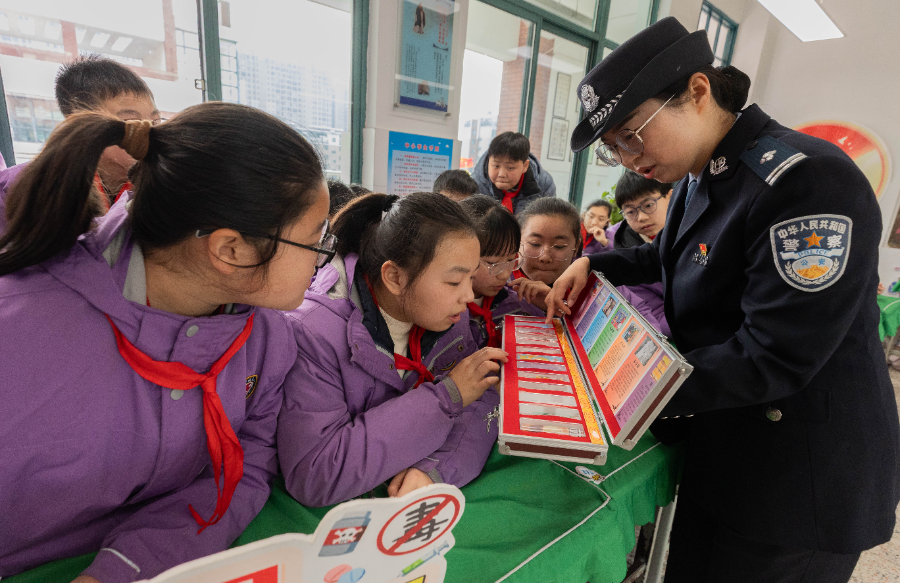禁毒民警摒弃枯燥的说教,结合毒品仿真模型和PPT,用通俗易懂的语言向孩子们讲解青少年群体中常见的“笑气”、成瘾性物质滥用问题及新型毒品的传播趋势。互动环节孩子们踊跃参与,现场气氛热烈。