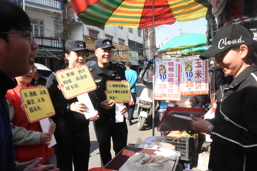 活动开始前,民警向师生讲解毒品危害,传授识毒技巧,指导学生书写禁毒春联。活动现场,师生志愿者挥毫泼墨,“新春防毒不松懈 珠乡守安万事兴”等作品跃然纸上,过往群众纷纷驻足观看。民警借机用方言宣讲“电子烟”“奶茶”等新型伪装毒品的隐蔽危害。在互动问答区,“答对禁毒题领春联”的福利点燃了群众的参与热情。
