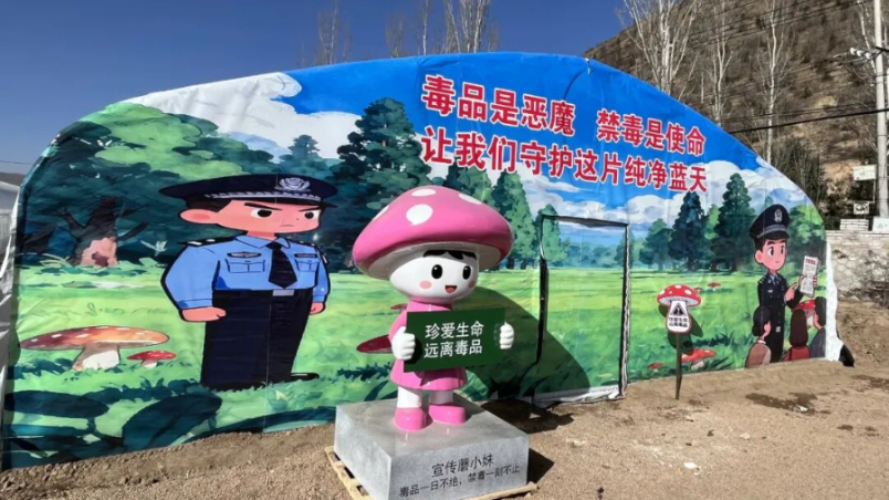 "赛场入口设置禁毒咨询台、摆放毒品仿真模型,禁毒专干向入场村民发放宣传单页及小礼品;周边插满“拒绝毒品,为健康投篮”等主题宣传旗,观众手持“禁毒必胜”标牌呐喊助威。"